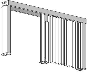 Название говорит само за себя, в данном случае сетка собрана «гармошкой» и закреплена между двумя металлическими планками, одна из которых крепится в дверной проем, а вторая двигается вместе с сеткой по пластиковой направляющей (высота 5 мм) до упорного короба, который закреплен на противоположной стороне проема.